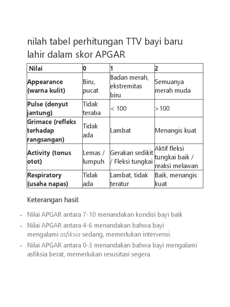 Apgar Tabelle, Nilah Tabel Perhitungan Ttv Bayi Baru Lahir Dalam Skor Apgar Pdf